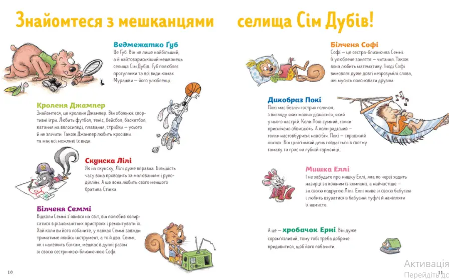 У селищі Сім Дубів мешкають ведмедик Ґуб, білченя Софі, кроленя Джампер і їхні друзі. Щодня дітлахи навчаються і розважаються. Та часто змушені й вирішувати якісь клопоти. Наприклад, що робити, коли тобі нудно? Як переконати батьків утілити мрію? І чи можливо досягти перемоги в командній грі, коли супротивники значно вправніші?