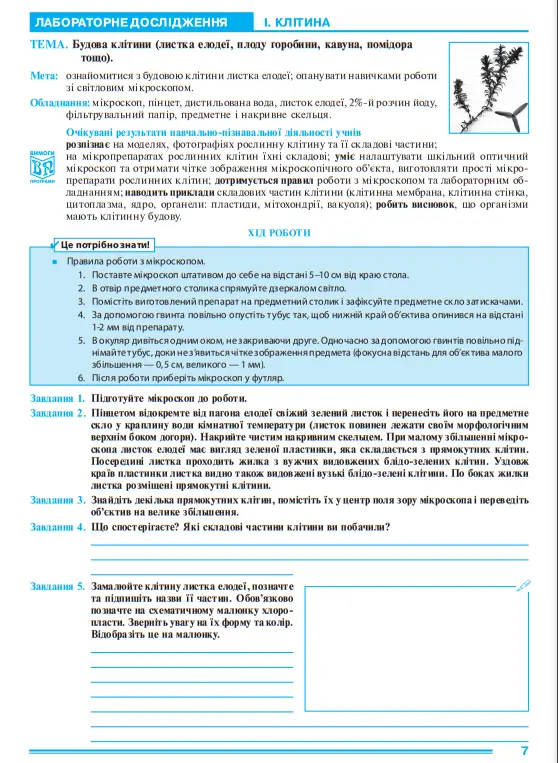 Пропоноване видання містить інструктивні картки для лабораторних досліджень, практичних та лабораторних робіт, передбачених оновленою навчальною програмою Міністерства освіти і науки України з біології для учнів 6-го класу. Мета посібника — формування умінь самостійного вивчення та узагальнення навчального матеріалу. Для учнів загальноосвітніх навчальних закладів, учителів біології, студентів вищих педагогічних закладів.