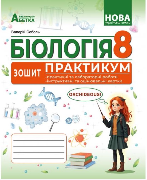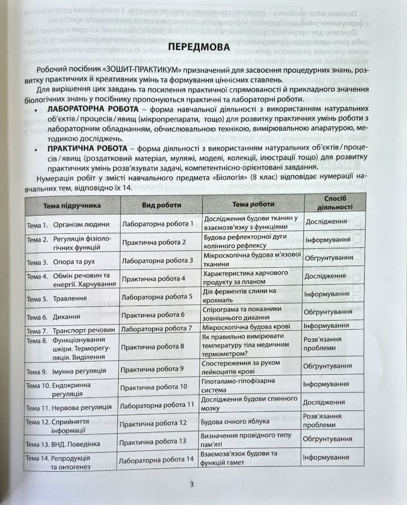 Робочий посібник «ЗОШИТ-ПРАКТИКУМ» з біології (8 клас) є частиною дидактичного комплекту, що призначений для тематичного оцінювання навчальних досягнень учнів за трьома групами результатів. У комплект входять ще «ЗОШИТ-КРЕАТИКУМ» та «ЗОШИТ-КОМПЕТИКУМ».