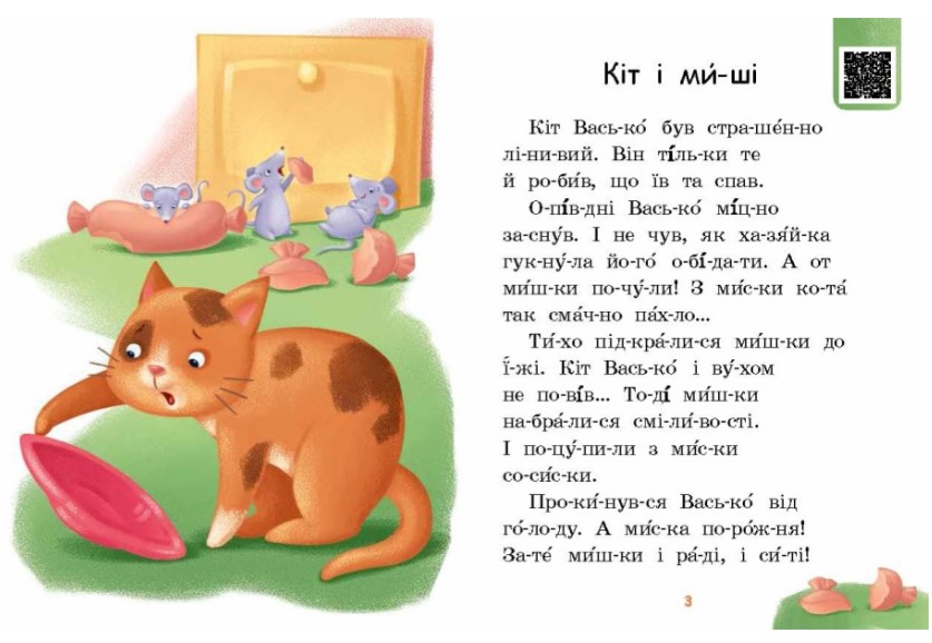 Книжка «Читаємо по складах. Хитрий сніг» допоможе вашій дитині освоїти навички читання, а короткі веселі історії не втомлять маленького читача. На кожному розгорті ви знайдете одну історію, ілюстрацію до неї та QR-код, перейшовши за яким, можна послухати аудіоверсію історії. Таким чиним, дитина спершу навчатиметься читанню способом спостереження за допомогою аудіозапису, а згодом зможе читати самостійно.