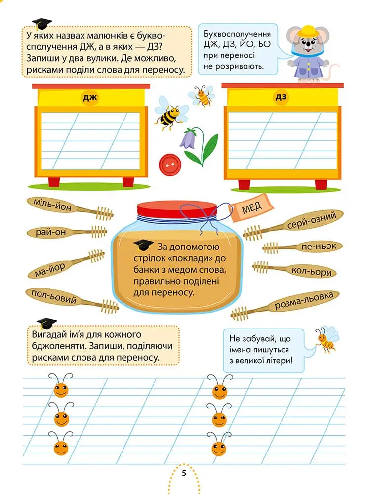 Непосидючі герої зошита — миша та жирафа — не можуть ні дня без пригод. Вони пізнають світ і разом з тим навчаються. Із веселими друзями ваш школяр швидко та залюбки оновить у пам’яті шкільну програму та опанує нові знання. Миша та жирафа надаватимуть йому підказки з найважливіших та найскладніших питань і доступно пояснюватимуть нові теми. Посібник містить усі необхідні теми з предмета в ігрових завданнях, завдяки чому ваш школяр точно не занудьгує.