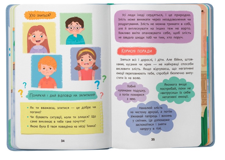 Книга «Дружу з емоціями» навчить дитину розрізняти базові емоції та почуття — сум, заздрість, злість, страх, ніяковість, ревнощі, відчуття образи та провину. До кожного оповідання додані запитання, завдання та психологічні поради, які ефективно та наочно навчать малюка опановувати власні емоції та бути в гарному настрої. А отже, гармонійно розвиватися, долати труднощі та почуватися комфортно за будь-яких обставин!