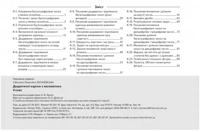 Дидактичні картки з математики 4 клас