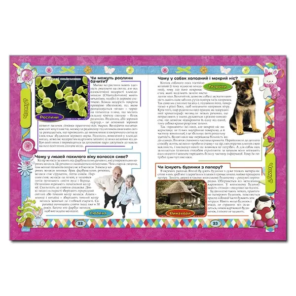 Дитячі запитання такі різноманітні, що відповісти на них батькам часом буває непросто. Але всім зрозуміло, що залишати запитання без відповіді не можна! Адже, ставлячи запитання, дитина хоче дізнатися про навколишній світ. І, одержуючи відповідь, вона стає розумнішою й дорослішою. Навчитися відповідати дітям доступно та правильно – це справжнє мистецтво. Адже для того щоб відповісти на дитячі запитання, батькам і самим необхідно знати багато. Наша книга стане чудовим помічником батькам “чомучок”. У ній ви знайдете багато відповідей на дитячі запитання. Інформація в книзі викладена дуже доступною “дитячою” мовою й доповнена яскравими ілюстраціями.