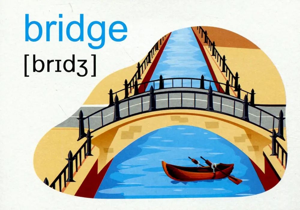 На картці міститься кольоровий малюнок, подана назва зображеного англійською мовою і транскрипція слова.