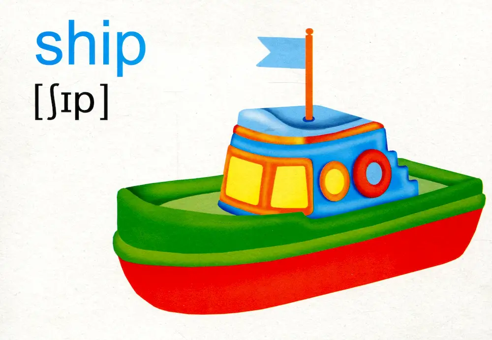 На картці міститься кольоровий малюнок, подана назва зображеного англійською мовою і транскрипція слова.