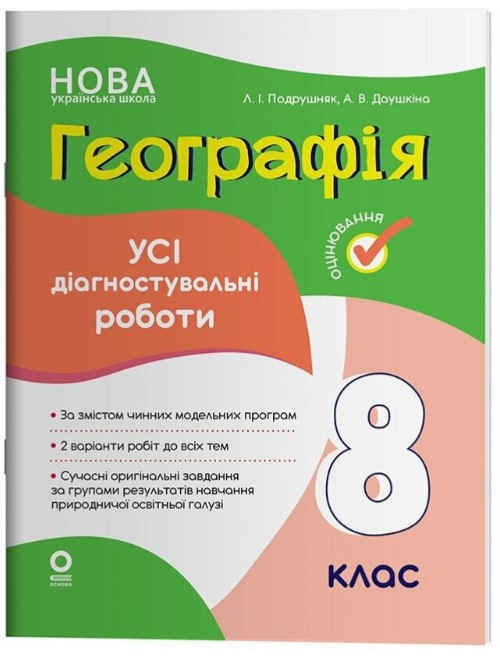 Будьте першим, хто залишив відгук на “Географія. Усі діагностувальні роботи. 8 клас | Подрушняк Л.І.”