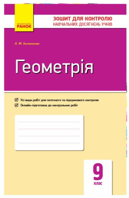 Зошит відповідає вимогам оновленої програми з математики для 9 класу загальноосвітніх навчальних закладів і призначений для поточного і тематичного контролю навчальних досягнень учнів з геометрії.