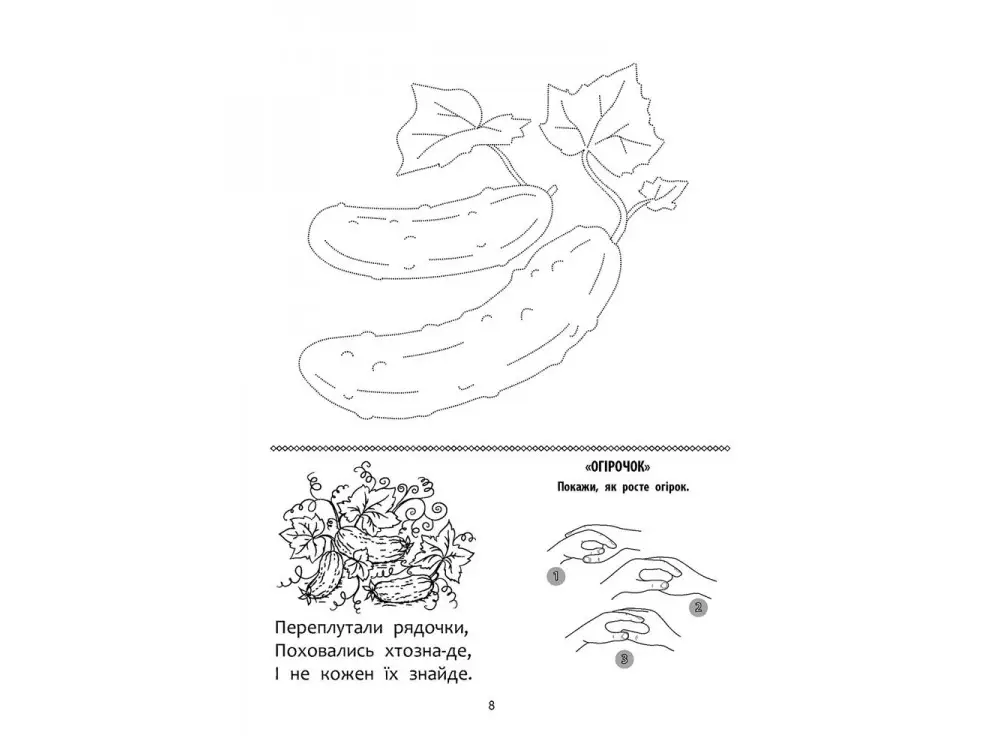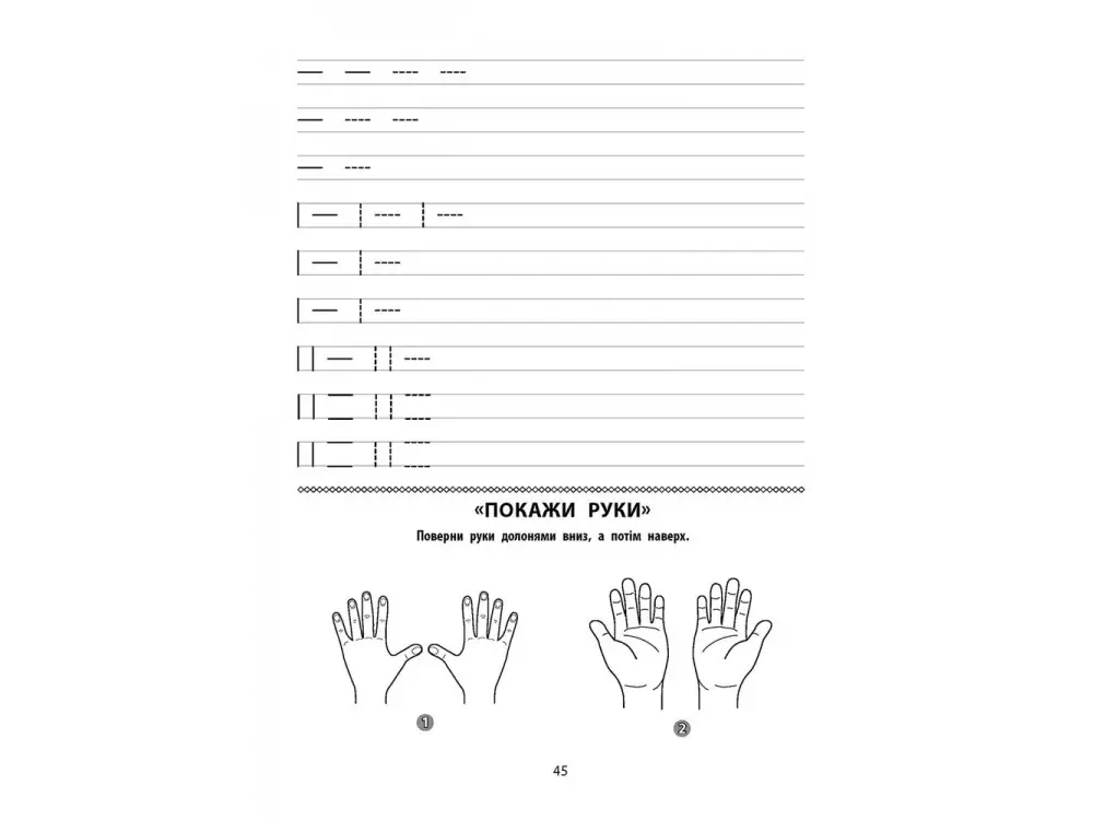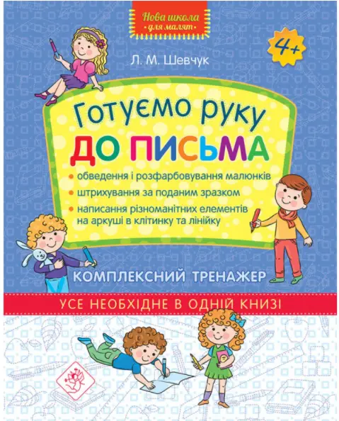 «Готуємо руку до письма» — це комплексний тренажер, усе необхідне в одній книзі. У посібнику є малюнки для обведення і розфарбовування кольоровими олівцями та контури для штрихування, вправи для написання елементів на аркуші у клітинку або лінійку за поданим зразком. Ігровий сюжет та вірші захоплюють дитину, а пальчикова гімнастика допоможе зміцнити ще слабкі в такому віці м’язи кисті малюка та надасть їм злагодженості та скоординованості.