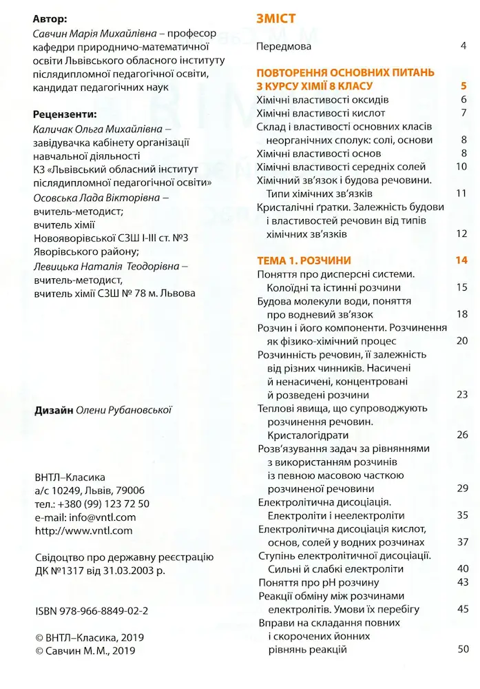 Схвалено для використання у навчально-виховному процесі Комісією з хімії Науково-методичної ради з питань освіти Міністерства освіти і науки України.