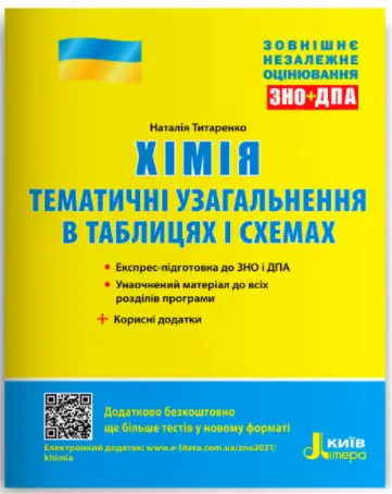 Нове довідкове видання допоможе повторити шкільний курс із хімії за мінімум часу і водночас комплексно підготуватися до державної підсумкової атестації та зовнішнього незалежного оцінювання.
