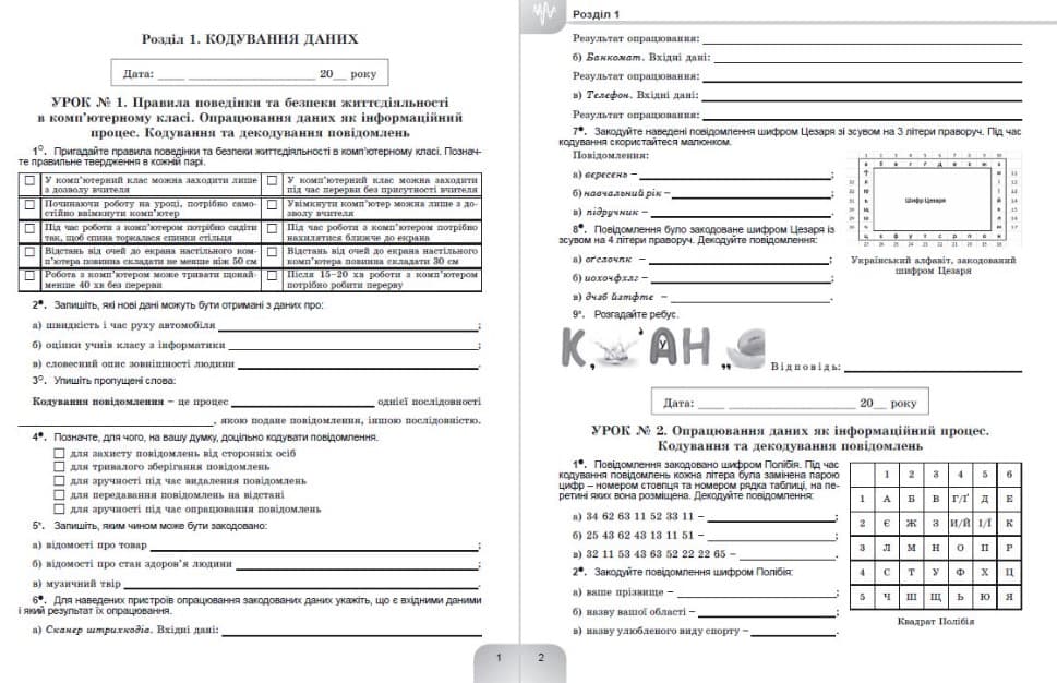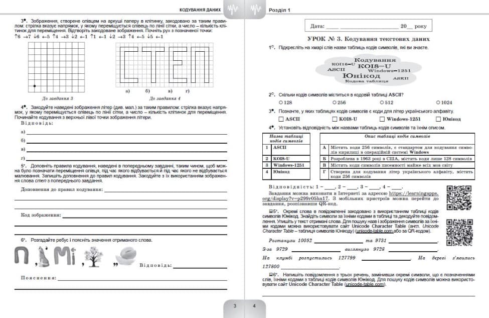 Зошит містить запитання та завдання різних типів для узагальнення та перевірки знань, набуття ключових та предметних компетентностей, вправи для вдосконалення навичок роботи з комп’ютером до кожного уроку інформатики. Для підвищення інтересу до вивчення предмета в зошиті запропоновано ребуси, кросворди.