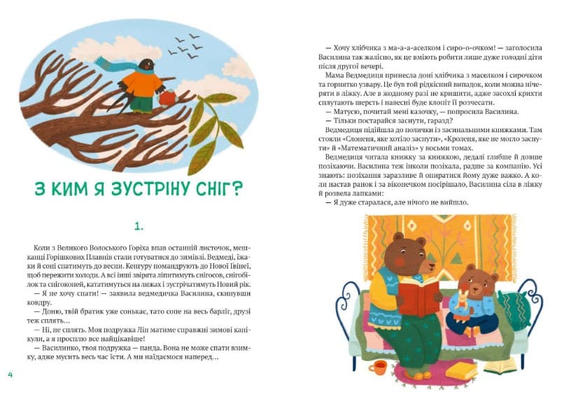 Мешканці Горішкових Плавнів готуються до зимівлі. Хтось із них спатиме до весни, хтось зустрічатиме Новий рік, ліпитиме снігосов, снігобілок і снігоконей, а хтось помандрує зимувати до Нової Ґвінеї. Звірята такі не схожі одне на одного, тому мають різні звички, потреби та страхи.