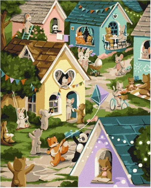- Соковита палітра пронумерованих, акрилових фарб в контейнерах