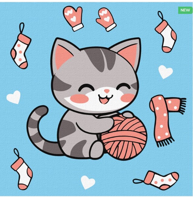 Картина за номерами – Котик і клубочок (картина №2) 25х25