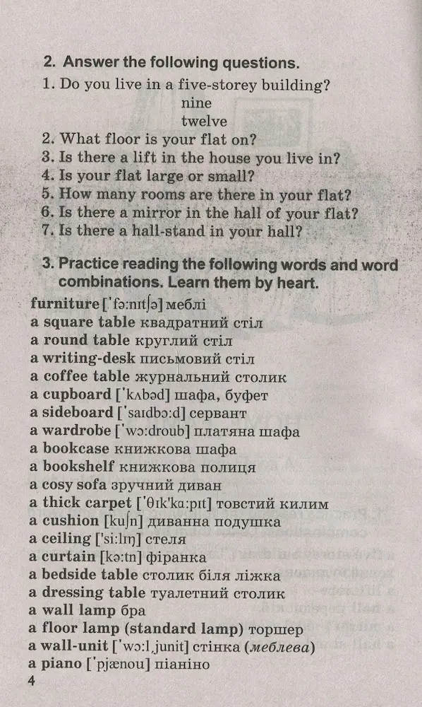 Посібник містить низку найуживаніших тем: родина, погода, театр, освіта, подорожі тощо. Кожна тема супроводжується великою кількістю завдань, спрямованих на формування та закріплення навичок складання розповіді з використанням прямої та непрямої мови, уміння ставити запитання і відповідати на них.