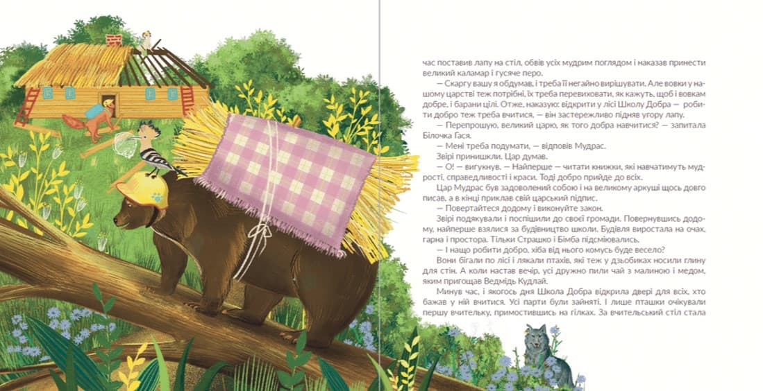 У казковому лісі живуть собі звірята. Часом приятелюють, іноді сваряться, тож вирішили відкрити Школу Добра, аби ніхто нікого не ображав. Тому тепер Вовчик Страшко не кривдить Барана Берберана, Жабка Мася дружить із Лелекою а Киця Миця — з Гусочкою Біляночкою. Ця книжечка казок допоможе діткам зрозуміти, що добре, а що погано, і знайти справжніх друзів.