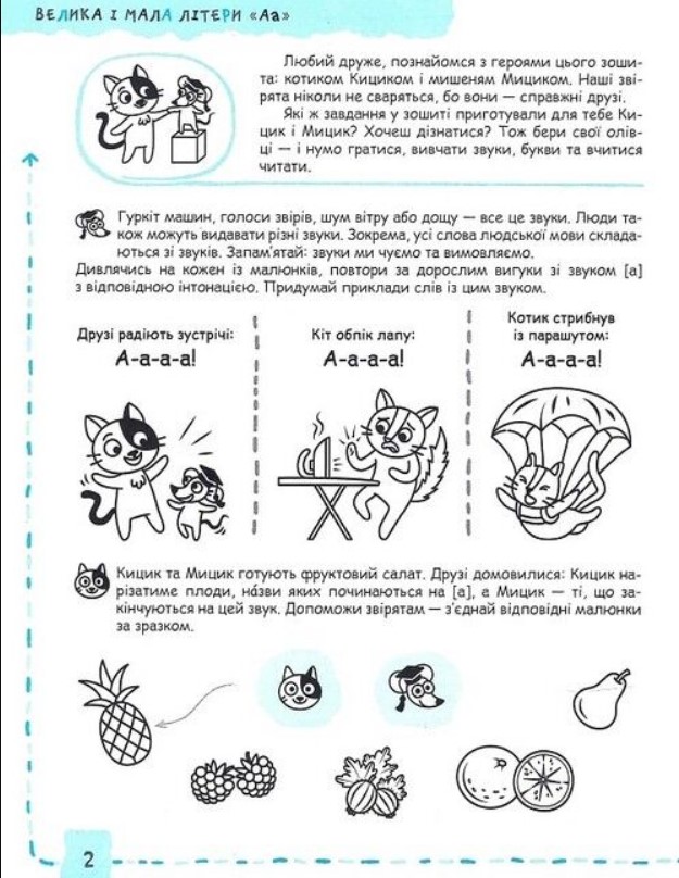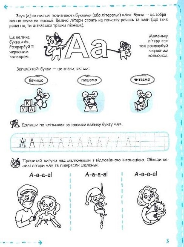 Унікальний за змістом і методичним наповненням робочий зошит — стильний та сучасний, зроблений з любов’ю та знанням своєї справи провідними вітчизняними фахівцями. Зошит має на меті ознайомити дитину старшого дошкільного віку з літерами українського алфавіту, допомогти їй оволодіти початковими навичками читання, збагатити словниковий запас і навчитися писати друкованi літери. Посібник містить необхідний теоретичний матеріал, а також сучасні, цікаві, доступні, актуальні завдання, скомпоновані за принципами цілісності, системності, послідовності, поступового ускладнення, закріплення та повторення матеріалу. Зошит укладено за чинним Базовим компонентом дошкільної освіти та програмами розвитку дитини. До завдань із вивчення букв та читання входить матеріал із природознавства, підготовки руки до письма, логіки, суспільствознавства, розвитку мовлення та навчання грамоти тощо. Герої зошита, котик та мишеня, перетворять заняття на веселу й цікаву гру.