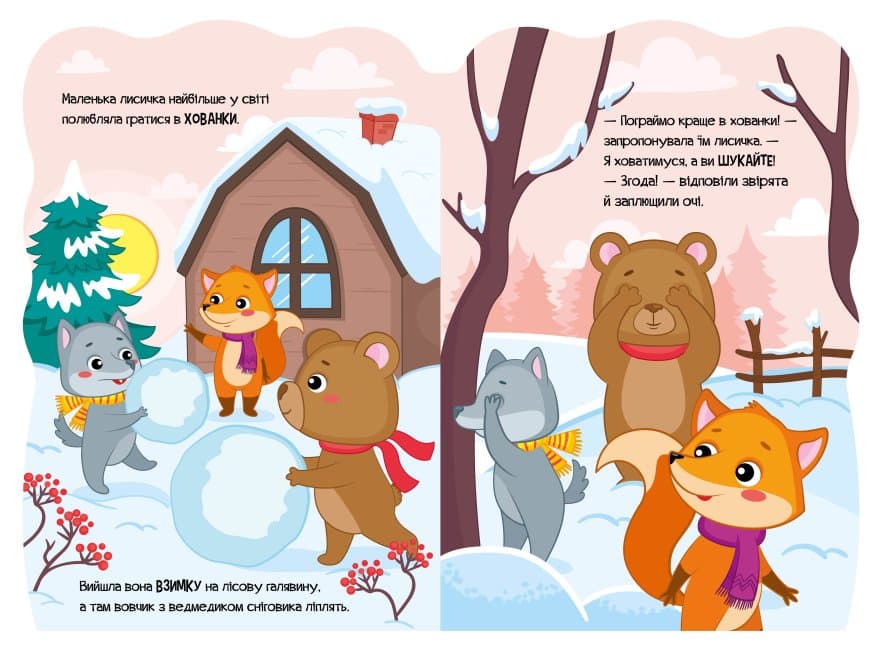 Новий рік – пора чудес, пригод та веселих вигадок! Гратися та святкувати хочуть усі: і дорослі, і малі, і навіть звірята. Разом з героями серії «Пригоди звіряток» ви допоможете зайчикові прикрасити будинок до свята, разом з хоробрим олеником відвідаєте Санта-Клауса, а лисичка та ведмедик відкриють для вас світ цікавих забавлянок. Зимові пригоди вже чекають на вас!
