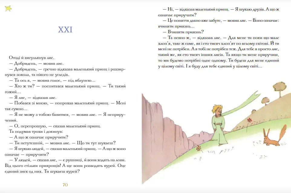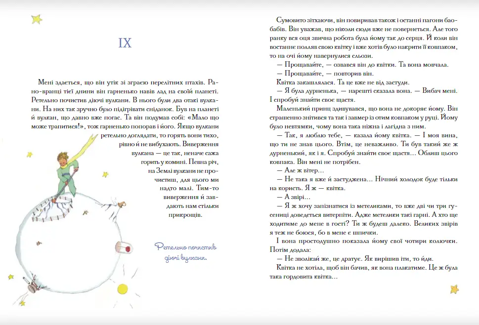 Це лірична казка для дітей і філософська притча для дорослих. Дивовижна простота цього твору порушує такі глибокі й важливі поняття, як життя і смерть, любов і відповідальність, дружба і вірність.