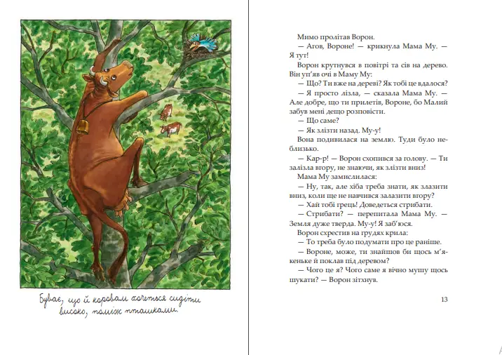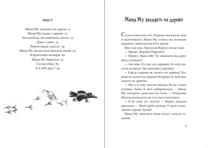 Ворон крутнувся в повітрі та сів на дерево. Він уп’яв очі в Маму Му: