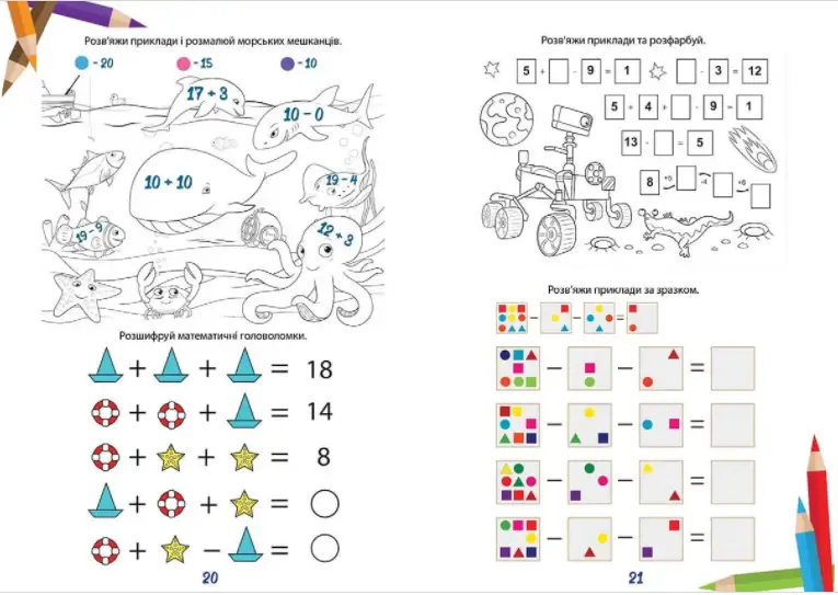 Захопливі, цікаві завдання — саме те, що треба для радісного навчання. У книжці зібрані прості математичні приклади, головоломки, ігрові вправи на вивчення складу числа, що стануть чудовим помічником у розвитку математичних навичок дитини.