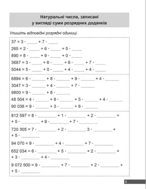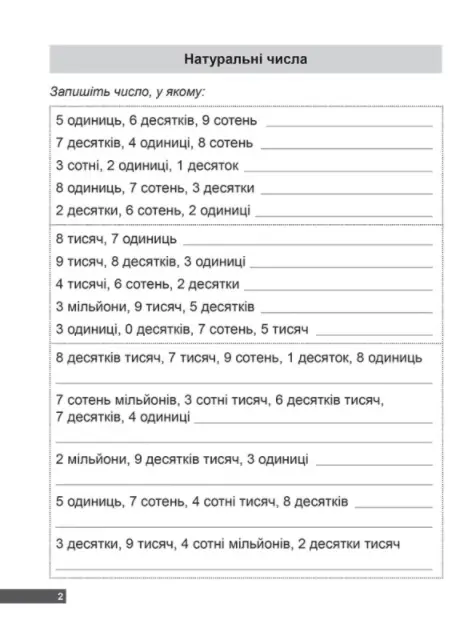Математичний тренажер. Вправи з натуральними числами 5 клас