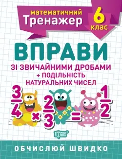 Математичний тренажер. Вправи зі звичайними дробами. Подільність натуральних чисел 6 клас