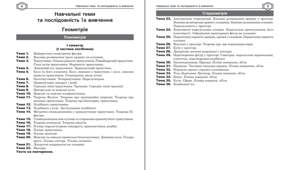 Метою пропонованого навчального посібника є організація самостійної роботи учнів при підготовці до зовнішнього незалежного оцінювання (ЗНО). Тестові завдання містять тематичні тестові завдання з геометрії, які охоплюють увесь курс планіметрії, тобто геометрії 7-го – 9-го класів. Тести укладені у двох рівноцінних варіантах по 30 завдань у кожному варіанті. До всіх завдань тестів є відповіді. Усі тестові завдання відповідають чинній програмі з геометрії для загальноосвітніх навчальних закладів та вимогам щодо написання сертифікаційної роботи ЗНО. Структура кожної з тем є аналогічною структурі тестів, пропонованих на зовнішньому оцінюванні. До посібника додається довідник, у якому роз’яснена теорія кожної з тем та запропоновано розв’язання типових задач. До усіх тем подано відеоуроки. Для вчителів та учнів загальноосвітніх шкіл та профільних класів природничого та фізико-математичного спрямування.