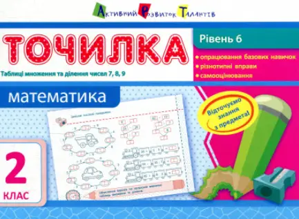 «Точилка» — це серія зошитів для активного розвитку математичних навичок. Кожна картка – це маленький, але впевнений крок до міцних знань, підкріплених практикою. 8 рівнів — 8 кроків до успішного навчання! «Точилка» — це: • опрацювання базових навичок; • різнотипні вправи з поступовим зростанням складності; • самооцінювання. Зошит має зручний формат і його зручно брати з собою.
