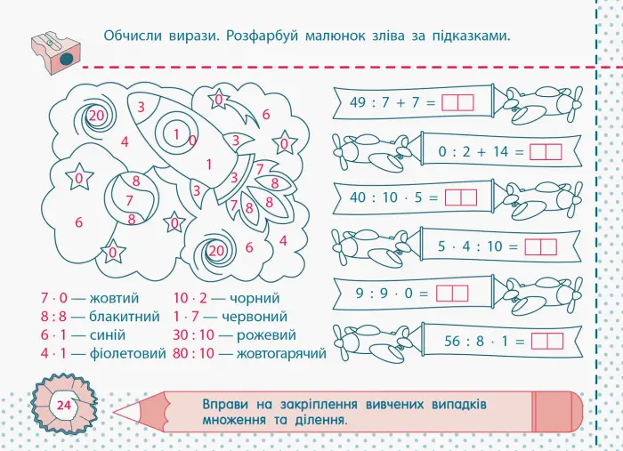 Будьте першим, хто залишив відгук на “Математика. Рівень 6. Таблиці множення та ділення чисел 7, 8, 9. 2 клас”