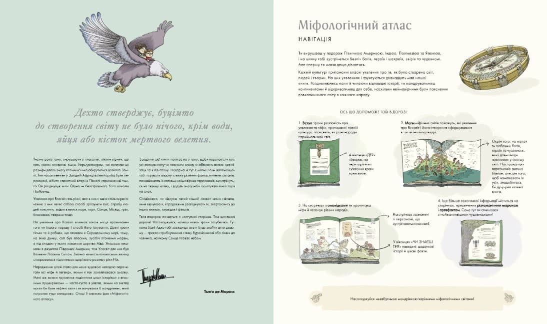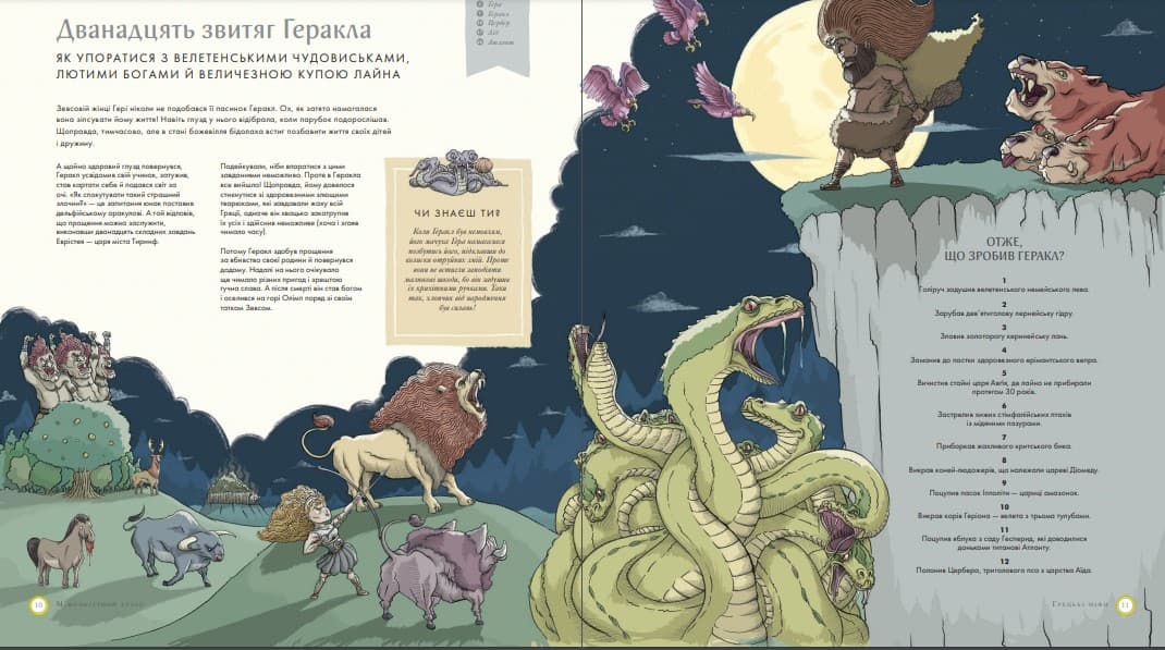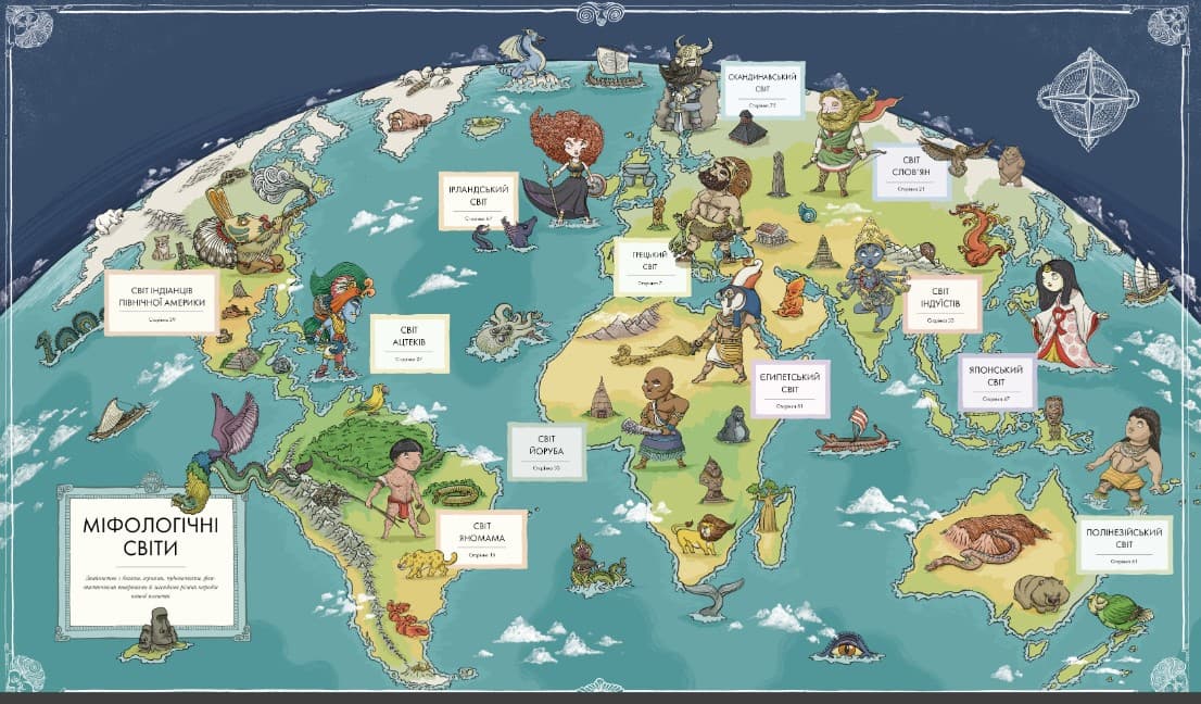 У цьому яскраво ілюстрованому виданні детально промальовано і прописано більшість міфологічних персонажів, артефактів і сюжетів, тож воно стане чудовим подарунком юним дослідникам, мандрівникам і слідопитам. Отже, прихопіть із собою карту, компас і вирушайте в чарівну подорож давніми світами.