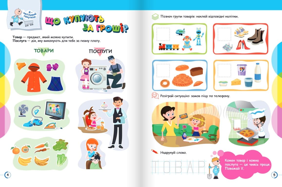 соціальної відповідальності, зокрема залученню до доброчинності й волонтерства. До кожного тематичного блоку подано практичне заняття, що дає дітям змогу закріпити та перевірити набуті знання, а також «заробити свої перші гроші».