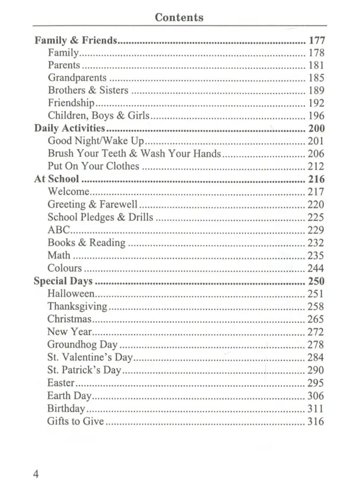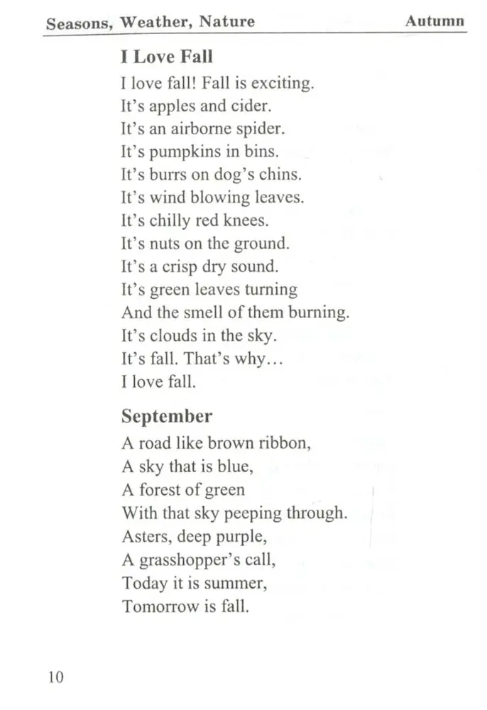 Збірка містить кращі взірці англомовної поезії визнаних класиків дитячої англійської поезії та вірші сучасних англійських й американських авторів. У книжці вірші упорядковано відповідно до розділів: «Seasons, Weather, Nature», «Animals», «Vegetation», «Family&Friends», «Daily Activities», «At School», «Special Days».