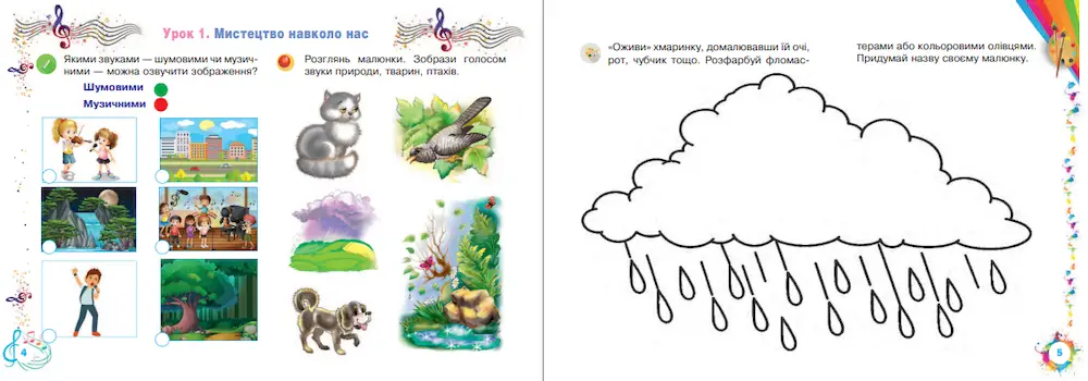 Мета альбома — допомогти учням засвоїти програмовий матеріал, навчити сприймати, розуміти і любити мистецтво, а також стимулювати творчу діяльність дітей на уроках. Завантаживши інтерактивний додаток, діти зможуть виконувати завдання на своєму гаджеті (давати відповіді на запитання, малювати тощо), а також слухати музичні твори. Вчитель, у свою чергу, матиме можливість використовувати твори для слухання і програмовий пісенний репертуар. Посібник відповідає новому Державному стандарту початкової освіти, типовим освітнім програмам, і підручнику «Мистецтво. 1 кл.» (авт. Рубля Т.Є., Щеглова Т.Л., Мед І.Л.). Для першокласників, їх дбайливих батьків і вчителів.