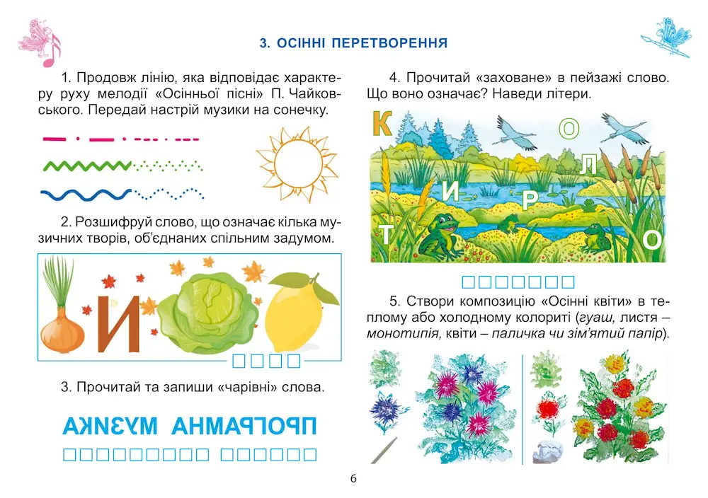 - Уміщуємо систему різних видів завдань музичної та образотворчої діяльності для виконання на уроці, удома та в позаурочний час