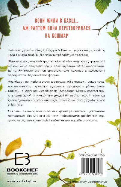Незабаром вони дізнаються, що нещасний випадок — лише початок непевності, і тривожні відкриття породжують убивчі запитання: чи знають вони своїх дітей насправді? Чи вони взагалі знають одна одну? Із розкриттям дедалі більшої кількості таємниць туман сумнівів і підозр загрожує отруїти їхні сім’ї, дружбу й усю спільноту.