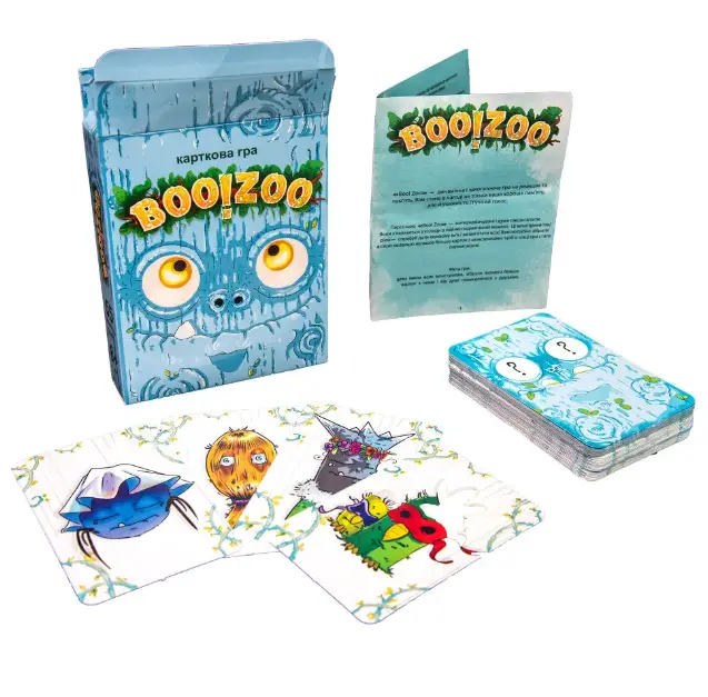 «BOO!ZOO» – це гра яка здивує будь-кого своїми цікавими персонажами, кожному з яких доведеться вигадати нове ім’я. Адже гра полягає в тому, щоб запам’ятовувати, як виглядають ці монстрики та вигукувати їхні імена тільки-но вони з’являються з колоди. Гра «BOO!ZOO» ¬– не просто спосіб гарно провести час. Це справжній тренажер пам’яті, уважності та реакції який сподобається і дітям, і дорослим. Вік: 8+. Кількість гравців: 2-4. Комплектація: 55 карток, інструкція.