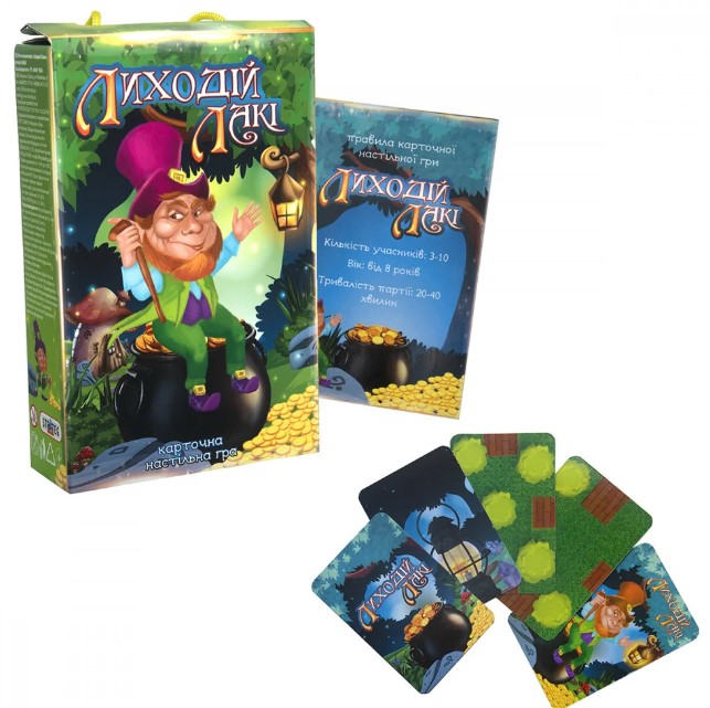 Пошук скарбу в таємничому лісі чекає гравців у настільній грі «Лиходій Лакі» Strateg (30605). Подорожі лепрекону Лакі перетворюються на веселу розвагу для компанії від 3 до 10 осіб. Гра зацікавить як дітей, так і дорослих. Вся сім’я захоплююче проведе час, покращить пам’ять і уяву. На шляху гравців чекають перешкоди, підказки та сюрпризи, а переможе той, хто знайде більше скарбів. Ходи гравців визначаються картками. Перед початком гри необхідно ознайомитись із простими правилами.