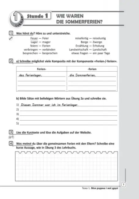 Зошит, укладений до підручника «Німецька мова. 9 клас. Deutsch lernen ist super!», містить різноманітні завдання, призначені для більш детального опрацювання учнями матеріалу підручника на уроках і вдома. Багато завдань спрямовані на формування навичок письма й аудіювання. Різноманітність і насиченість посібника уможливлює варіювання видів роботи на уроці й реалізацію індивідуального підходу до кожного учня.