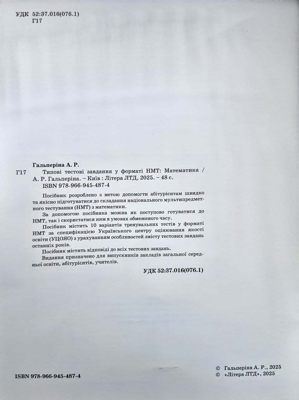 НМТ 2026: Математика Типові тестові завдання| Гальперіна А. Р.