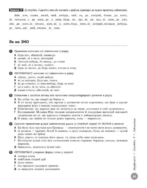 Видання створено з метою якісної та ефективної підготовки до складання зовнішнього незалежного оцінювання з української мови. У довіднику вміщено теоретичний матеріал, вправи, тести до кожної теми, а також тренувальні тести у форматі ЗНО та НМТ. За цим посібником учні можуть готуватись як самостійно, так і на шкільних уроках або заняттях із репетитором. Посібник має електронну підтримку на платформі ІЗЗІ. Для учнів, абітурієнтів, учителів, репетиторів і всіх, хто прагне здобути й удосконалити знання з української мови.