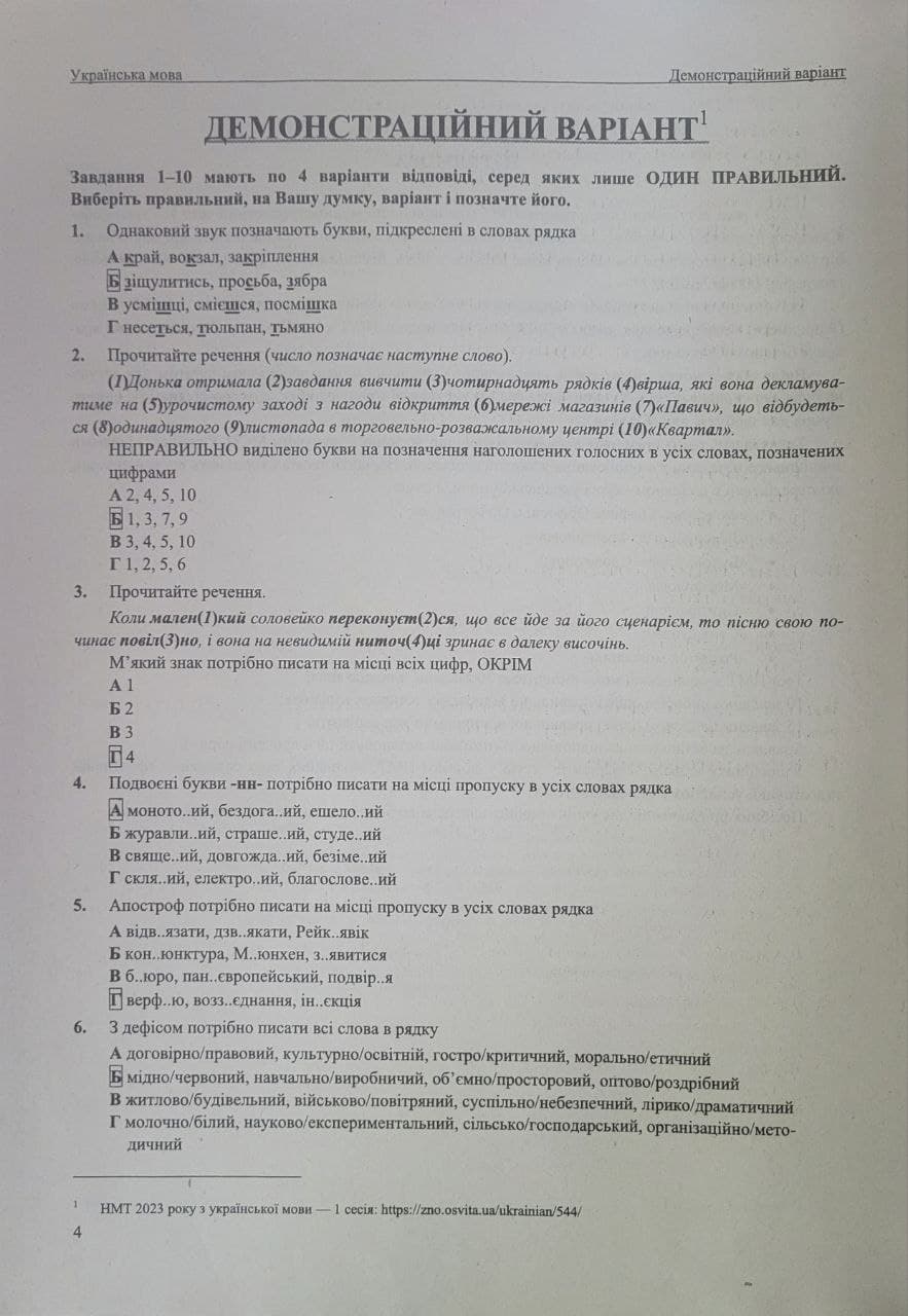 НМТ-2023 з відповідями. Кожен варіант тесту складається із 30 тестових завдань. Зміст завдань відповідає вимогам Програми зовнішнього