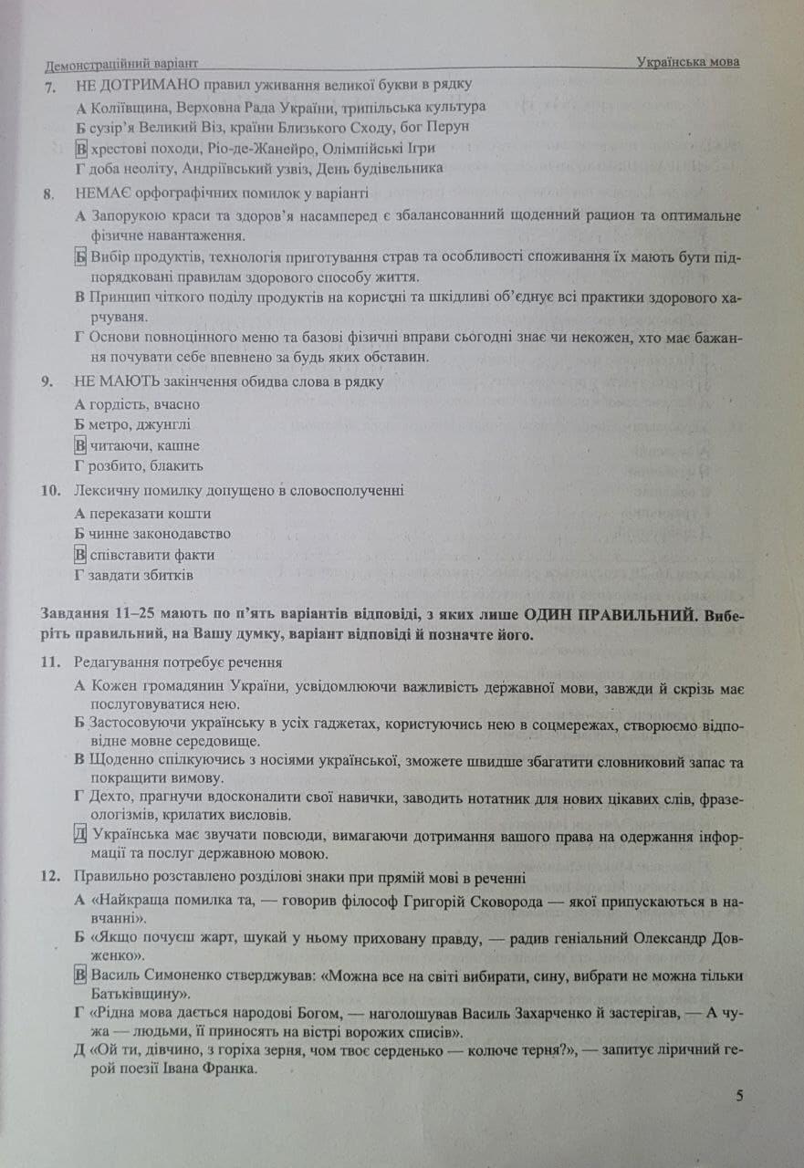 Орієнтовних варіантів тестових завдань з української мови в посібнику всього 12. На початку посібника наведено Демонстраційний варіант.