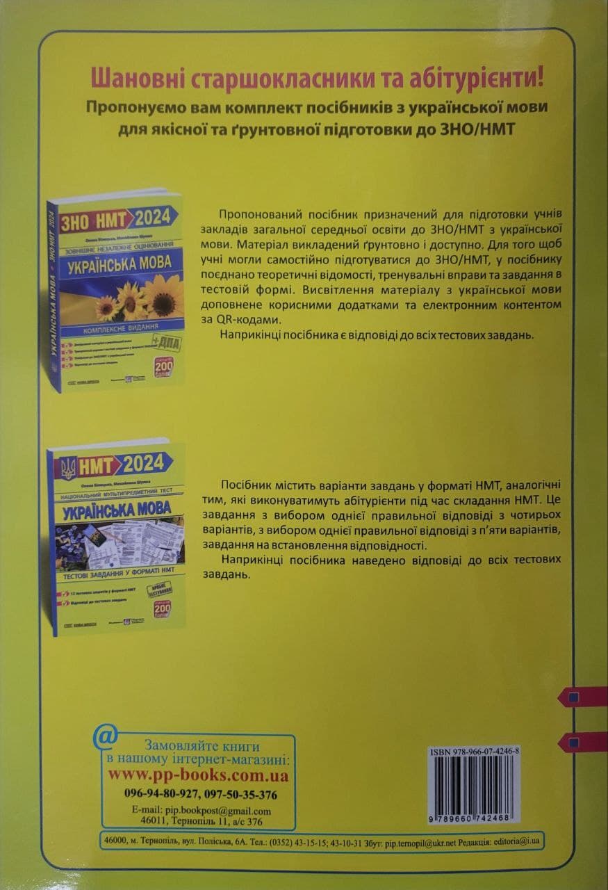 незалежного оцінювання з української мови, затвердженої МОН України. Мета видання — якісна та ефективна підготовка до виконання завдань НМТ з української мови.