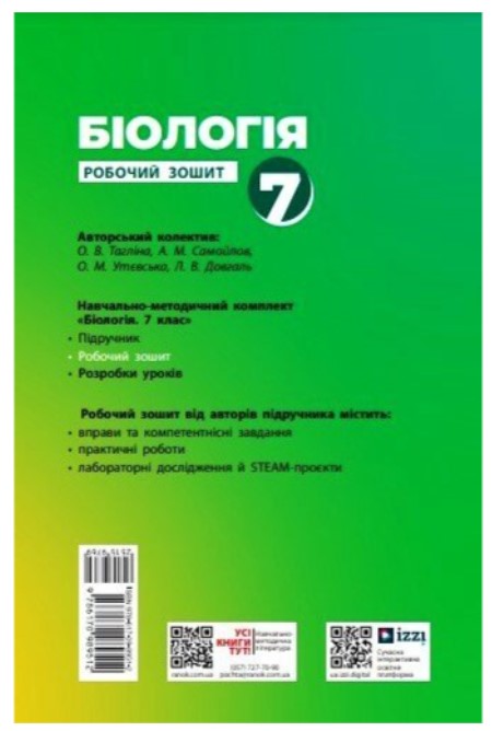 Цей робочий зошит укладено відповідно до параграфів підручника й доповнює його, надаючи можливість застосувати на практиці отримані знання. Тут є різноманітні компетентнісні завдання, творчі задачки й навіть невеликі експерименти! Зошит стане надійним супутником під час роботи на уроці та при виконанні домашніх завдань, допоможе учням і ученицям пізнати біологію та перетворить навчання на захопливу подорож!