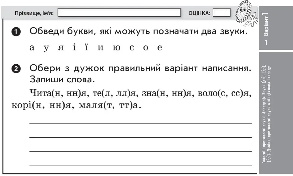 Відривні картки призначені для організації самостійної роботи здобувачів освіти на уроках, мета якої — перевірити засвоєння вивченого матеріалу. Завдання дібрані таким чином, аби на їх виконання учні витрачали не більше 7–10 хвилин. Третьокласники мають можливість здійснити самооцінку, домалювавши казковому персонажу, Соняшнику, відповідний вираз «обличчя».