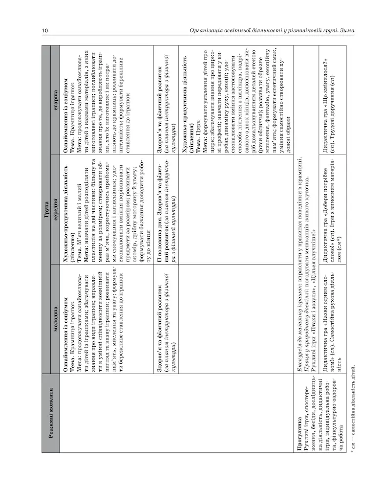 Організація освітньої діяльності у різновіковій групі. Зима