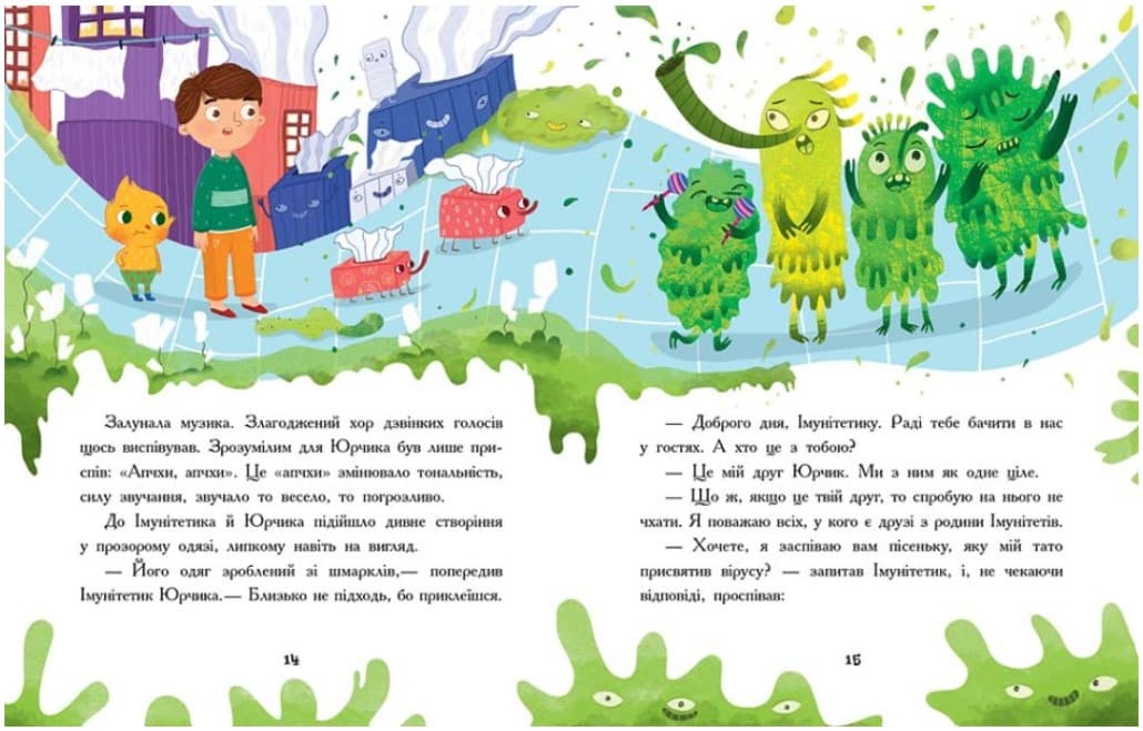 Жив собі хлопчик Юрчик, допомагав доглядати братика, складав конструктор з татом і любив тихцем дивитися мультики на планшеті. Та уявіть собі, одного дня він несподівано опинився в Країні Мікробів! Разом з новим другом Імунітетиком хлопчик на власні очі побачить мешканців цієї незвичайної країни: апчихуньчиків, кахунчиків, фей діареї та лихого Коронавіруса. Чи вдасться друзям повернутися з цієї подорожі здоровими? Як можна запобігти хворобам, уберегти здоров’я й покращити імунітет? Відповіді на ці й інші запитання – усередині книжки!
