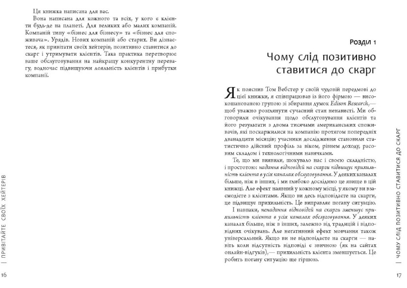 Відомий експерт Джей Бер подає видатні приклади привітання хейтерів і пояснює, як позитивне ставлення до них перетворюється на ваші гроші. Ви дізнаєтеся про типи хейтерів та загальні особливості їхніх скарг, правила поводження і тактику впливу на хейтерів. А опанувавши науку привітання хейтерів, ви зможете навіть найзапальніших з них приборкати і перетворити на своїх друзів і найвідданіших клієнтів.